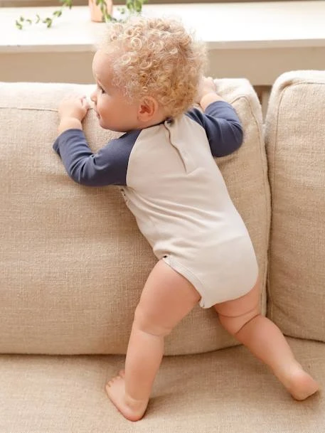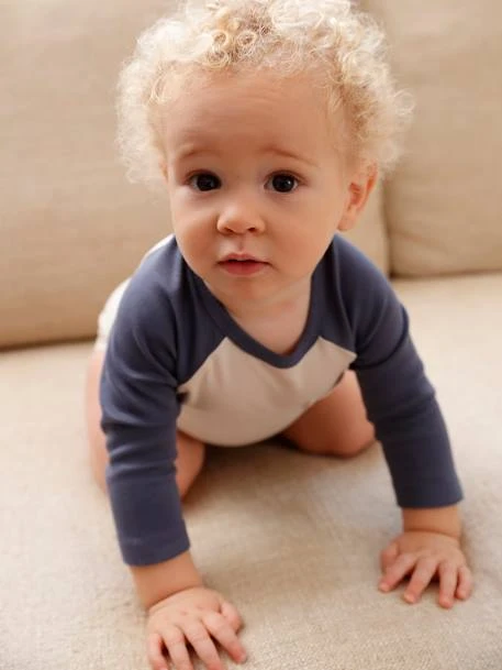 With its contrasting sleeves, this bodysuit is as pretty as a T-shirt. We love the colourblock sleeves for a more sporty look, perfect for our little boys.