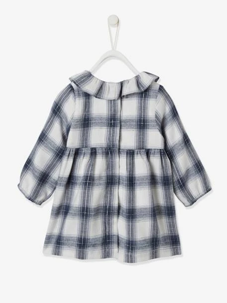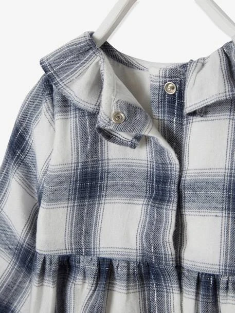 Chequered dress for babies: 98% cotton, 1% polyester, 1% metallised fibre. Lining in 100% cotton voile.