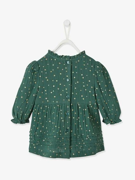 Cotton Gauze Dress With Asymmetric Fastening, For Babies – Dark Green/print