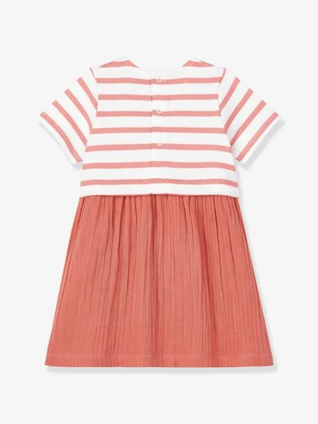 The Petit Bateau dual fabric dress features a two-in-one effect with its top part in a very soft striped jersey knit and bottom part in a flared cotton gauze: ideal for every day or those more special days!