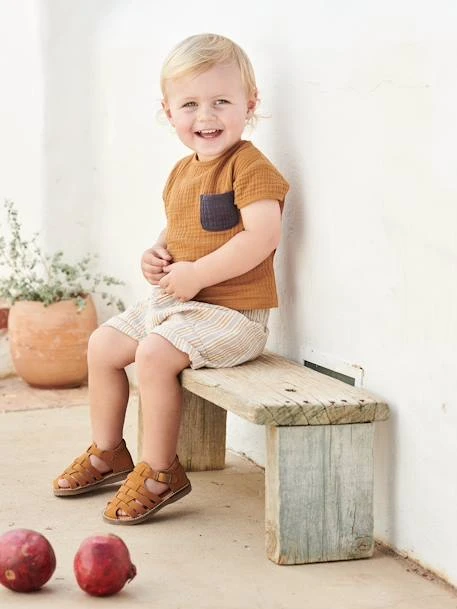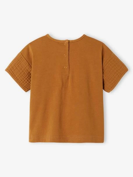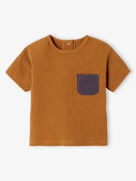 A T-shirt with mixed and matched materials: cotton gauze on the front and jersey knit on the back. This T-shirt is simply perfect to complete summer looks.