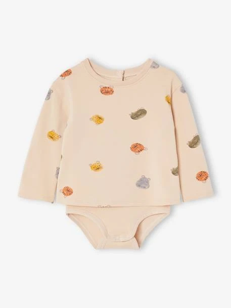 Colourful, fun and totally irresistible with its animal print, this bodysuit is not to be hidden underneath, but rather worn as a top… with a big difference: once you put it on, it keeps baby warm. Parents will love it!