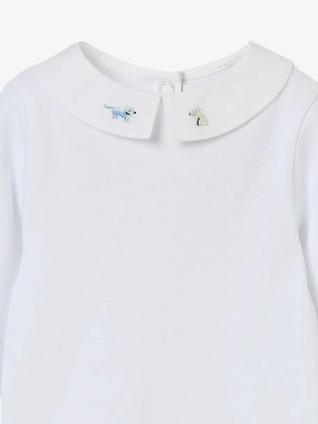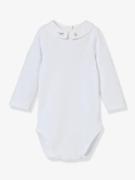 Organic Cotton Bodysuit With Embroidered Collar For Babies, By CYRILLUS – White