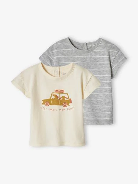Essential items in their summer bag. Lovely, soft and delicately comfortable, this pack of 2 T-shirts easily teams with a pair of trousers, shorts, or even swim shorts. A basic item that revamps their summer wardrobe with a touch of style.