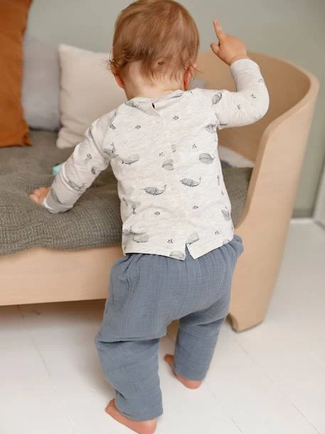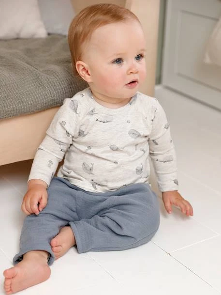 With its delicate, original graphics, this pack of 2 tops adds poetry to baby’s wardrobe. Sea motifs tell the most wonderful stories of whales and oceans.