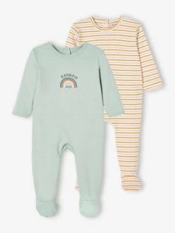 - Pack of 2 rainbow sleepsuits in interlock fabric, for baby boys