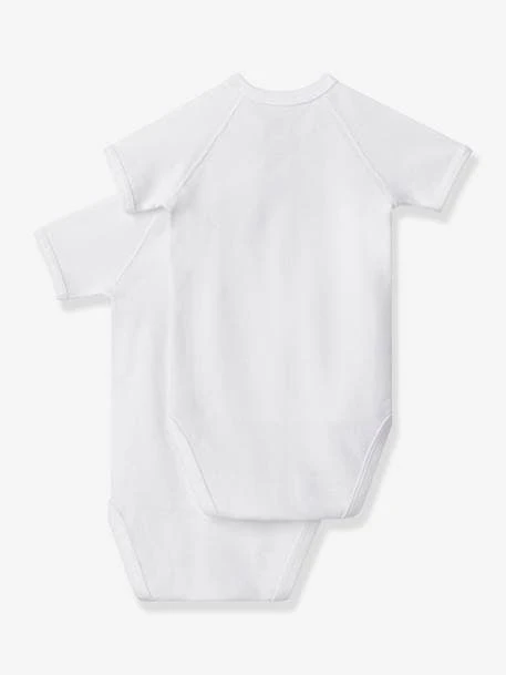 Pack of 2 short sleeve bodysuits in rib knit, Petit Bateau’s iconic fabric, for newborn babies.