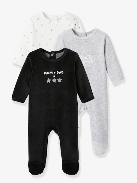 - Pack of 3 assorted velour sleepsuits