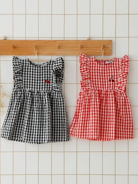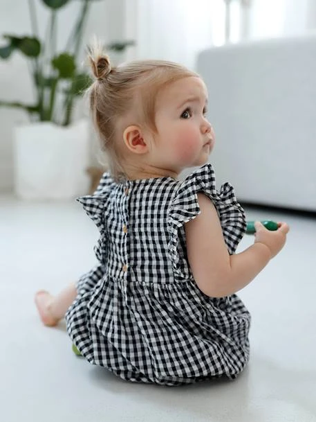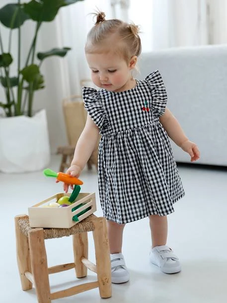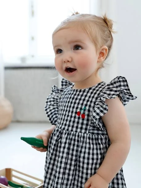 Sleeveless Gingham Dress, For Babies – Dark Blue Checks