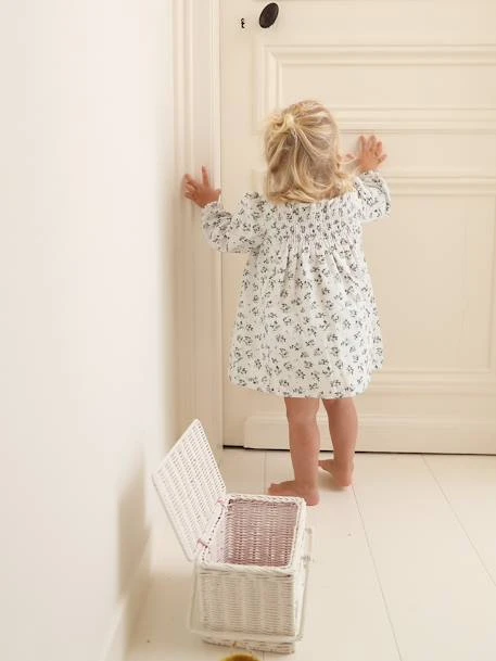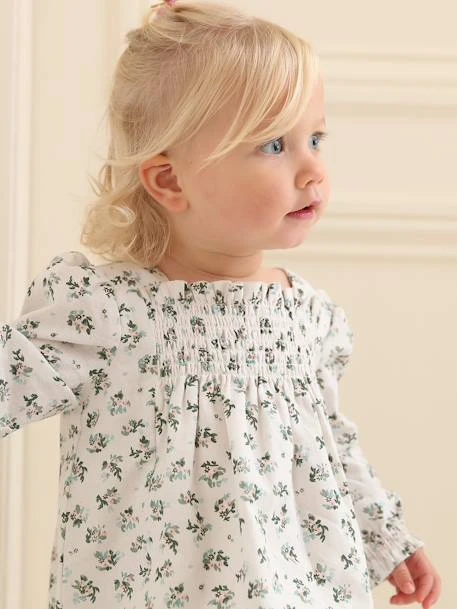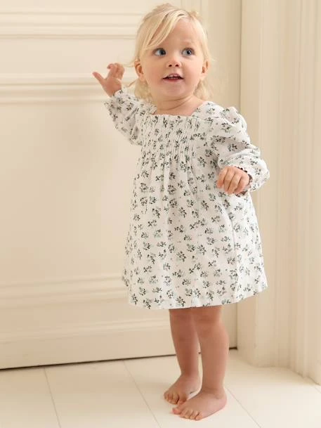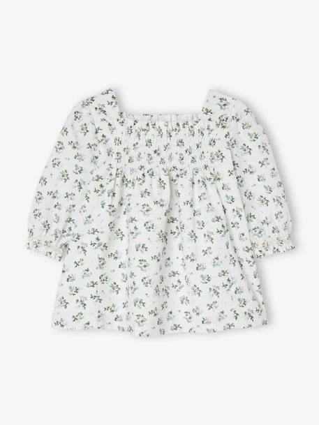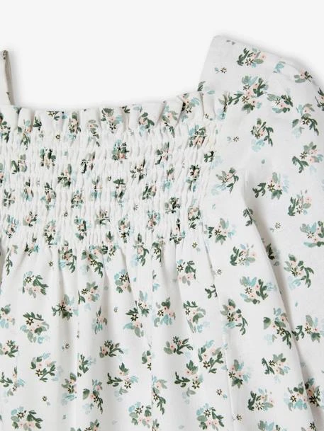 The delicate floral print adds the perfect bucolic touch to the summer. A cool dress with the right details and elegant smocking. A charming little dress, perfect for sunny days!