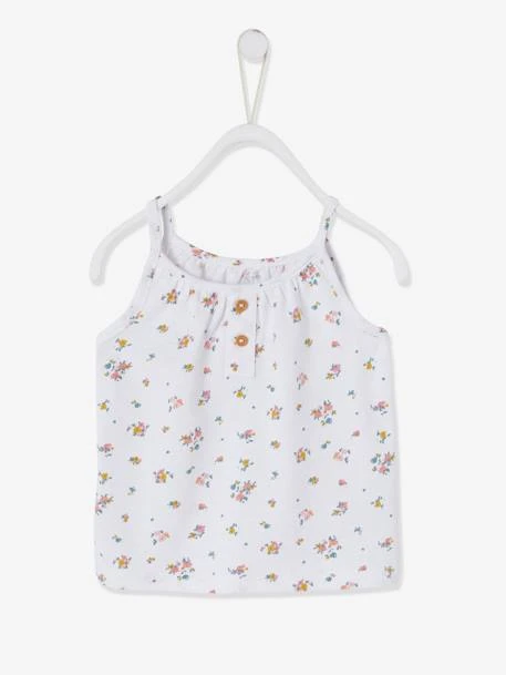 Striped Sleeveless Top With Fine Straps, For Babies – White/print