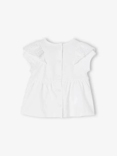 With its broderie anglaise ruffles, this T-shirt is as refined as a blouse. To add a romantic touch to your denim wear or a trendy touch to your shorts, this T-shirt will soon become your favourite.