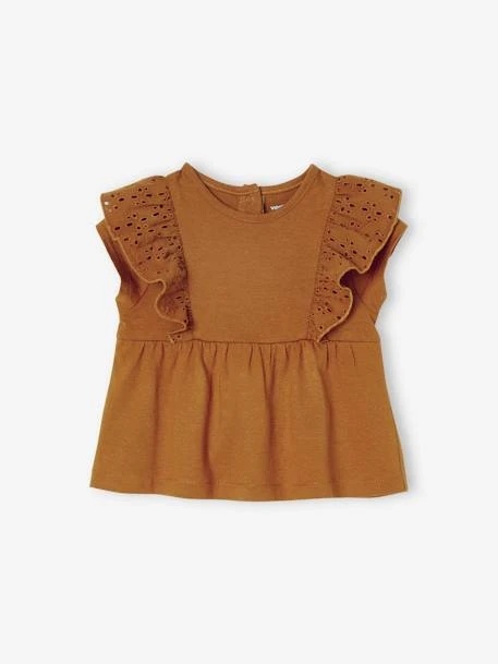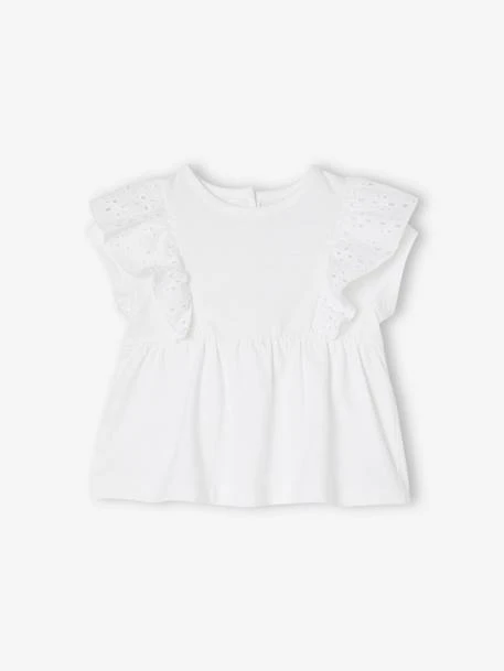 With its broderie anglaise ruffles, this T-shirt is as refined as a blouse. To add a romantic touch to your denim wear or a trendy touch to your shorts, this T-shirt will soon become your favourite.
