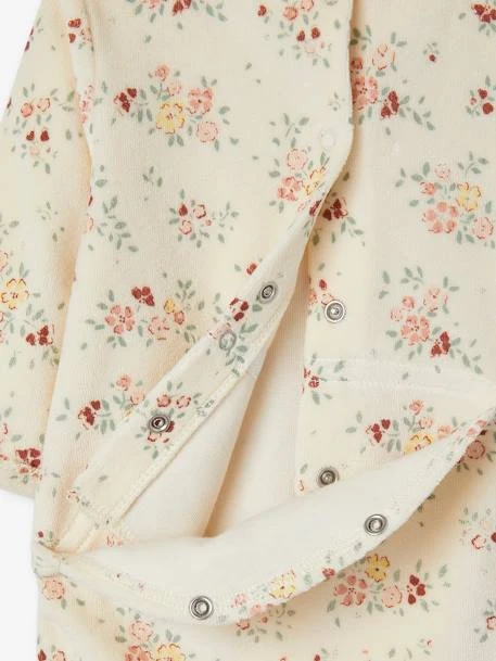 Very soft velour with a very delicate floral print and a lovely Peter Pan collar, this very romantic sleepsuit offers softness and well-being to baby girls’ nights and naps.