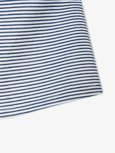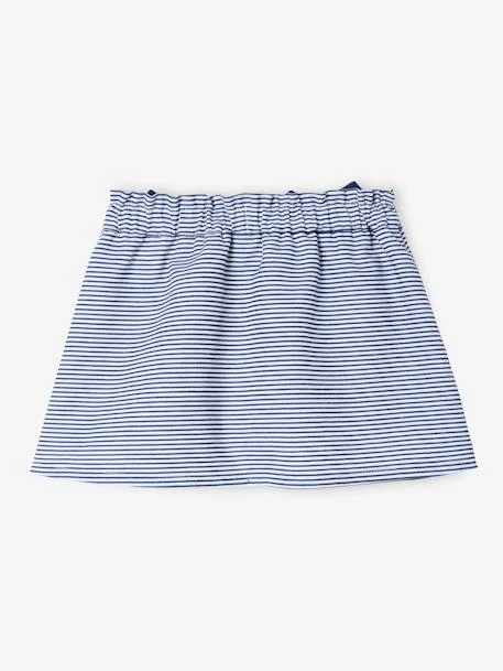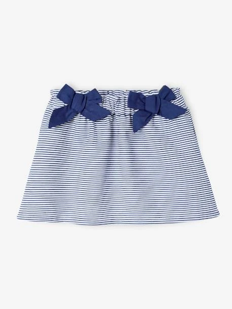 A navy look made more feminine by two charming bows, this striped skirt is the must-have item for several colourful combos. Perfect for a special occasion or for the summer.
