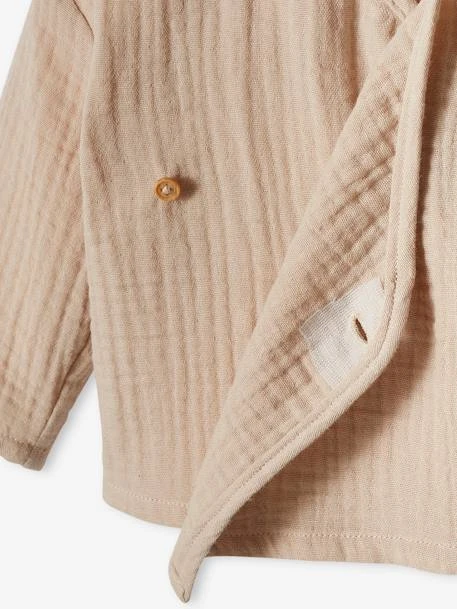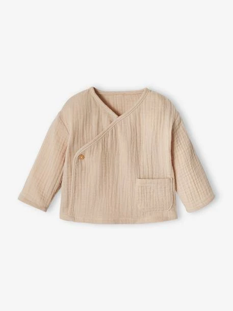 Like a cosy cocoon to wrap baby in! In cotton gauze, this wrap-over jacket has no equal when it comes to comfortable material and softness. With its crossover opening on the front, getting newborns dressed becomes child’s play!
